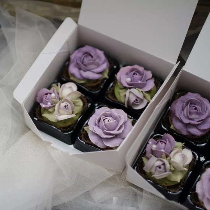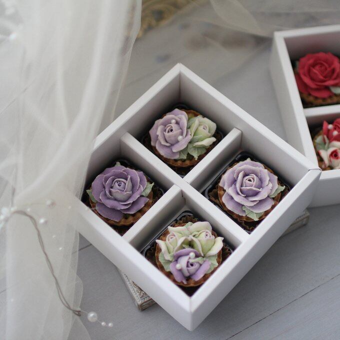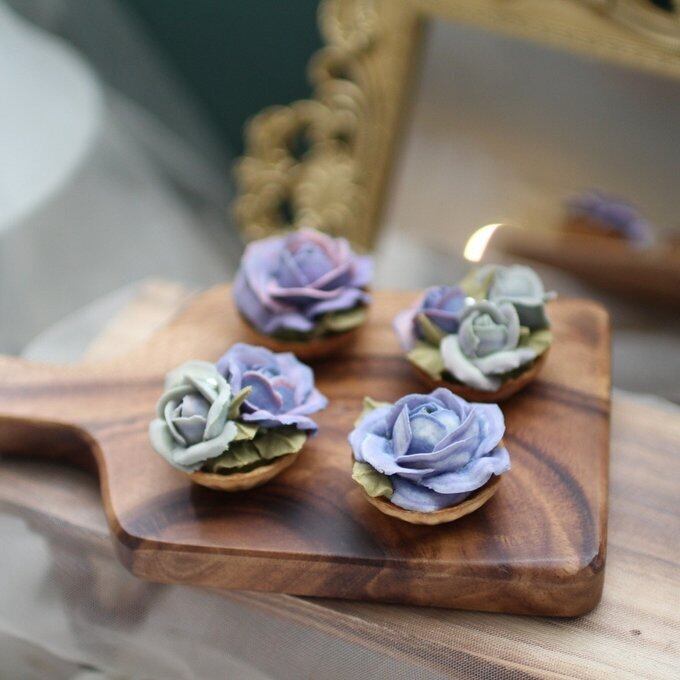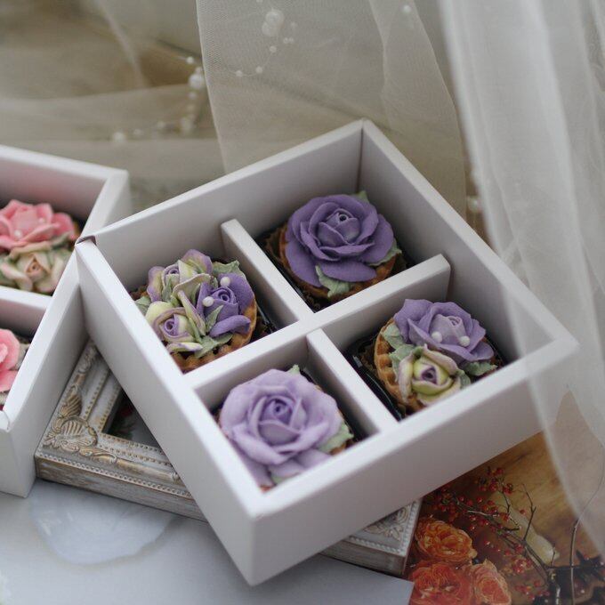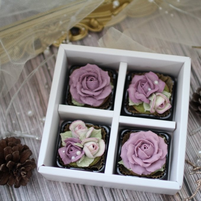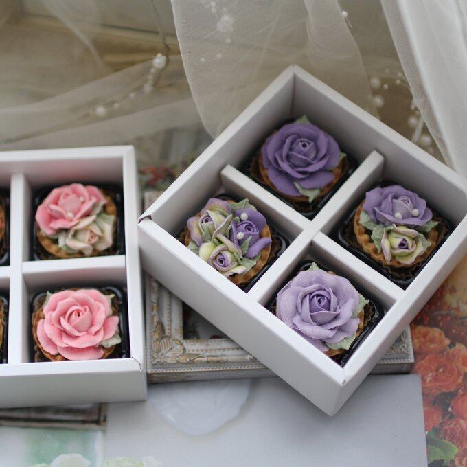 (風呂敷ラッピング)あんフラワークッキー(紫のバラ) フラワータルト 和菓子 食べられるお花!あんこのお花!4個入り