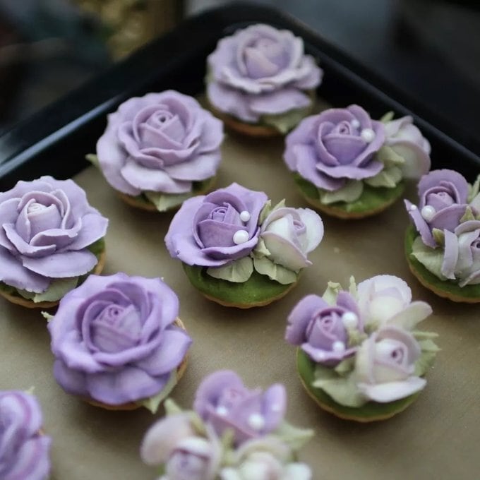 【あんフラワークッキー(ムラサキバラ)4個入り フラワータルト お食べられるお花!】