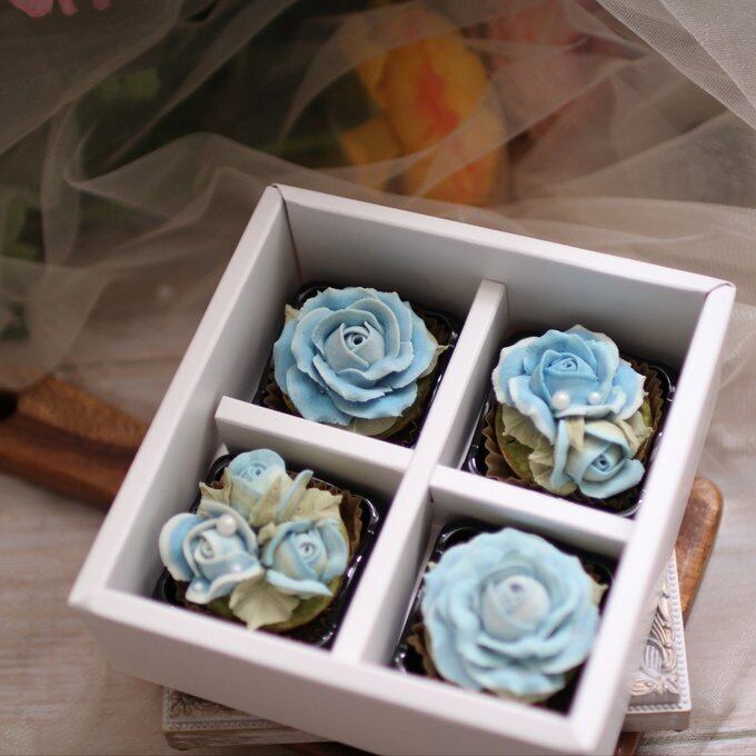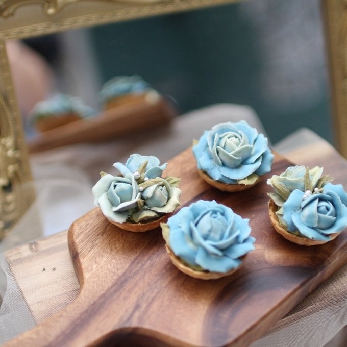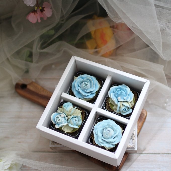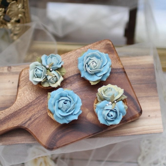 【あんフラワークッキー(青いバラ)4個入り フラワータルト お食べられるお花!】
